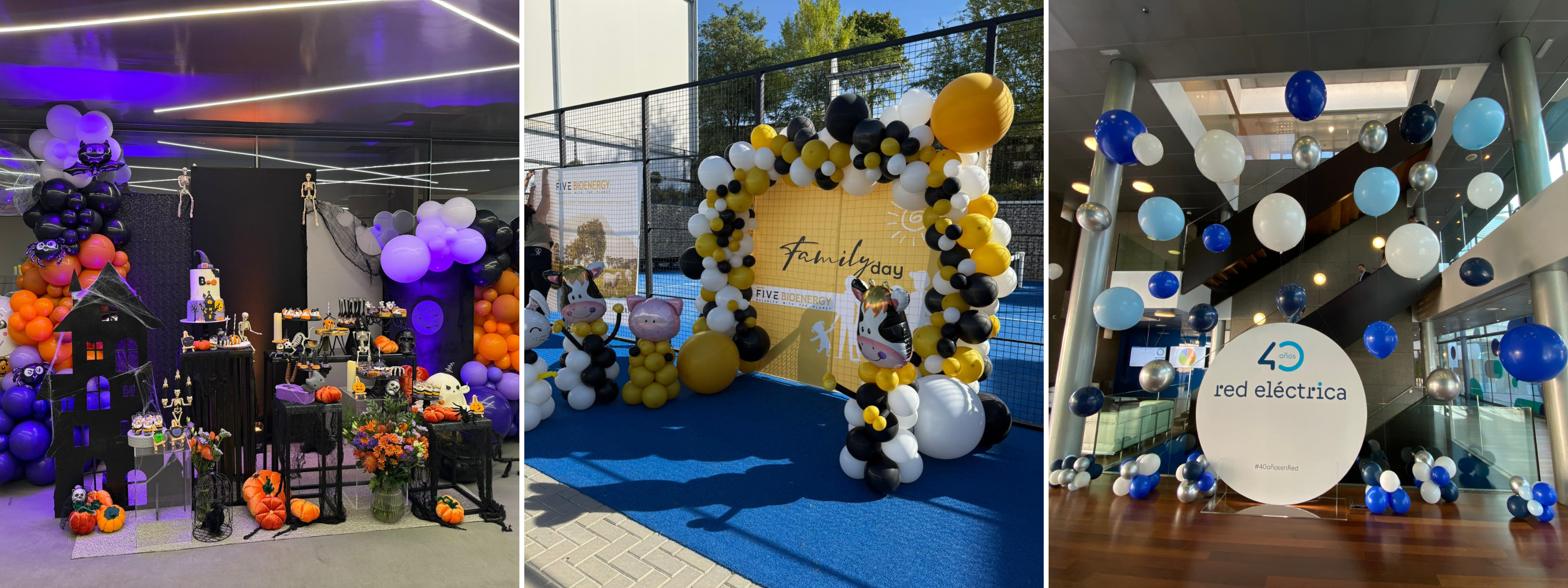 Diseñamos decoraciones temáticas con globos para fechas especiales que refuerzan la cultura corporativa, el sentido de pertenencia y la conexión emocional con tus equipos y clientes.🎃 Halloween, 🎄 Navidad, 💘 Día de los Enamorados, 👨👩👧👦 Happy Family Day, 🎉 Aniversarios empresariales o 🎈 jubilaciones: cada ocasión tiene su esencia, y nosotros la traducimos en colores, formas y composiciones únicas que transmiten alegría y cohesión.