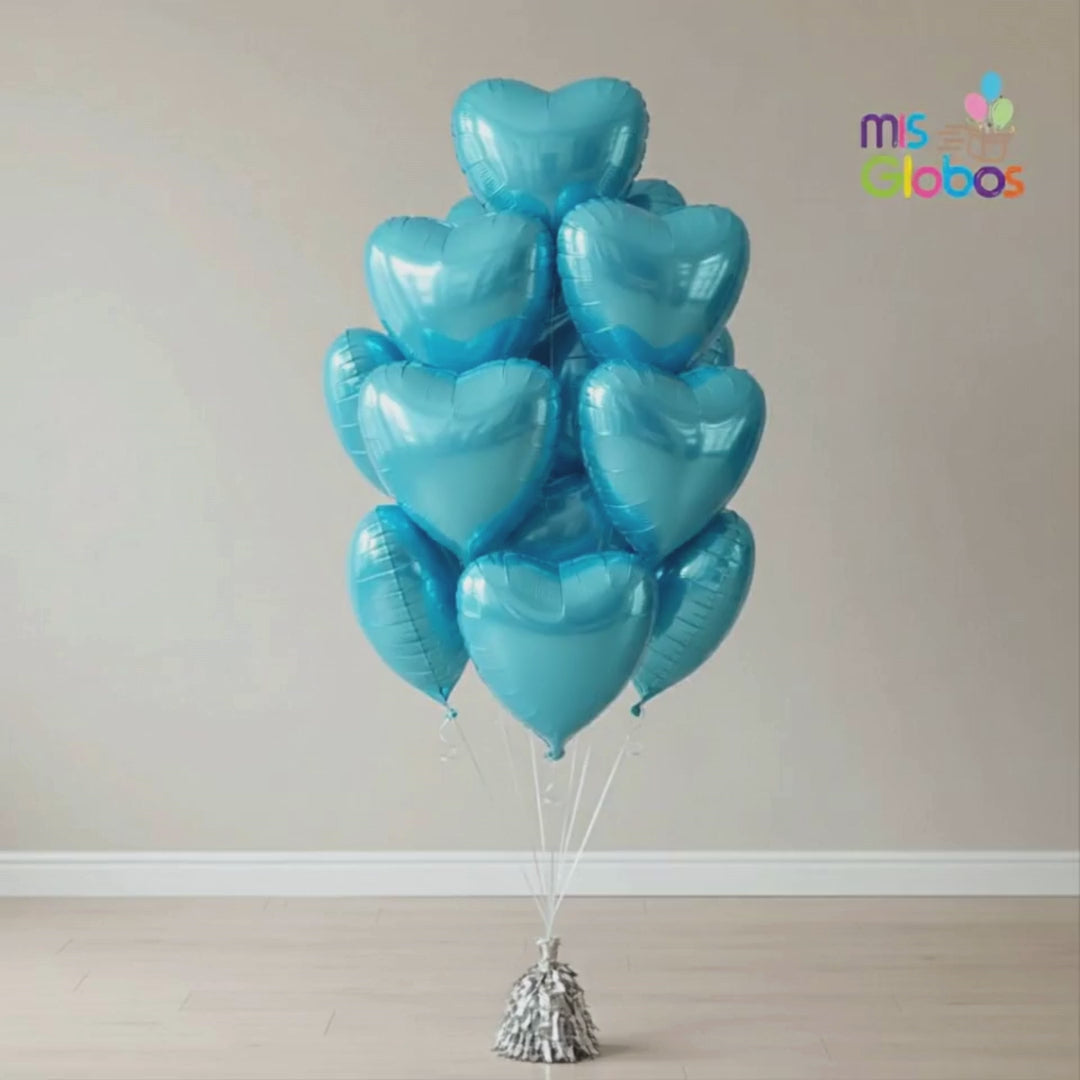 Quieres un ramo realmente espectacular con globos con forma de corazón en colores realmente impresionantes... sin duda este es tu ramo, puedes elegir la cantidad de globos que quieres añadir al ramo que irá sujeto a una pesa y elegir los colores